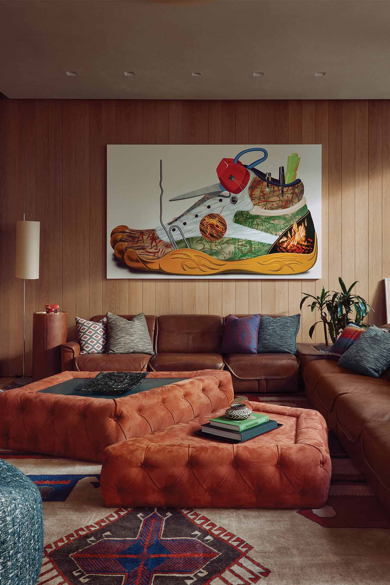 During wintertime, the great room is the couple’s après-ski ritual: He chases powder in Highland Bowl; she prefers to ski uphill for exercise at Aspen Highlands; and at the end of the day, both convene over cocktails in glassware from Pierre Cardin and Georges Briard.