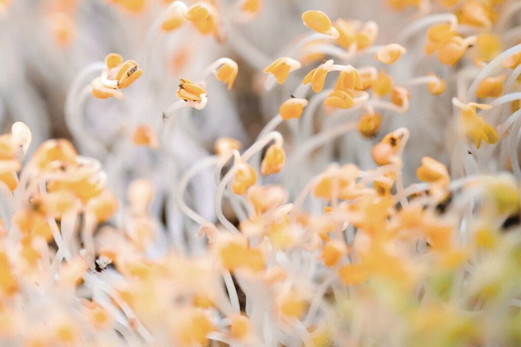 At Mesa Microgreens, they begin their journey as seeds planted in stacked trays of rich soil. Under artificial sun from grow lights, shop heaters, and LEDs, seedlings are coaxed from their shells in a carefully controlled, low-humidity indoor environment that’s kept at a moderate temperature of 70 degrees. Growing time varies by microgreen, but the more basic varieties, like pea, radish, sunflower, broccoli, kohlrabi, and kale, take under two weeks to grow.