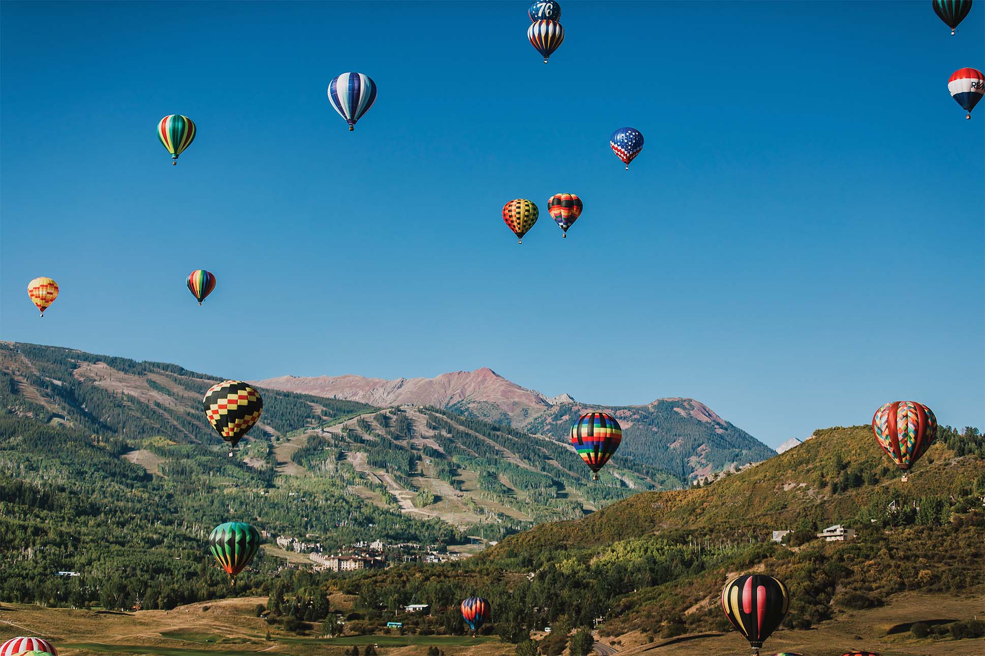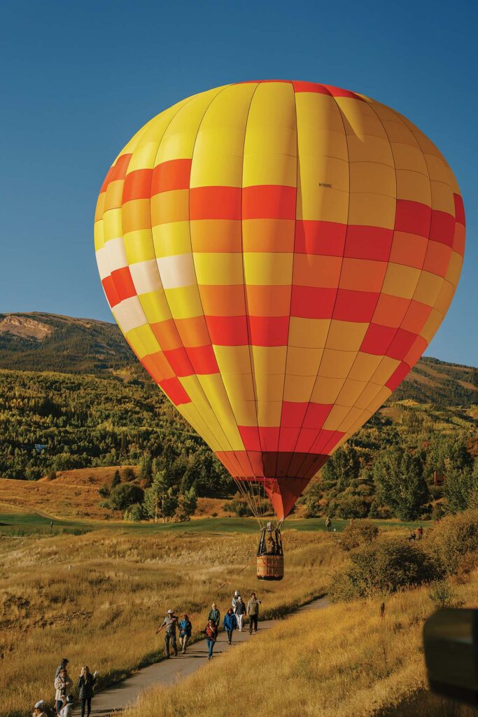 At Snowmass there are launch directors. You want to make sure that if you’re upwind, you don’t take off first and drag your basket across another balloon because it could do serious damage. Our basket is very hard. It’s wicker, it’s steel. It’s got sharp edges. If you take that basket and slide it against the big envelope, which is like a big tent, you can tear it. That’s the danger. But when you’re flying, even in Snowmass, we’ll do a little bump and do clusters. You’ll see pictures of three or four balloons kissing each other. You can do that without any worry because you’re just giant pillows.